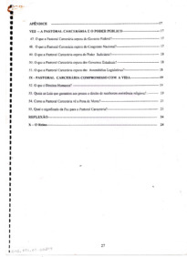 Apêndice faz referência a Pastoral Carcerária, pastoral da igreja católica ligada a Conferência Nacional dos Bispos do Brasil (CNBB), desde a sua relação com o poder público e o seu compromisso religioso.