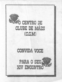 Convite para o XIV do Centro de Clube de Mães (C.C.M) no Instituto das Irmãs Missionárias.