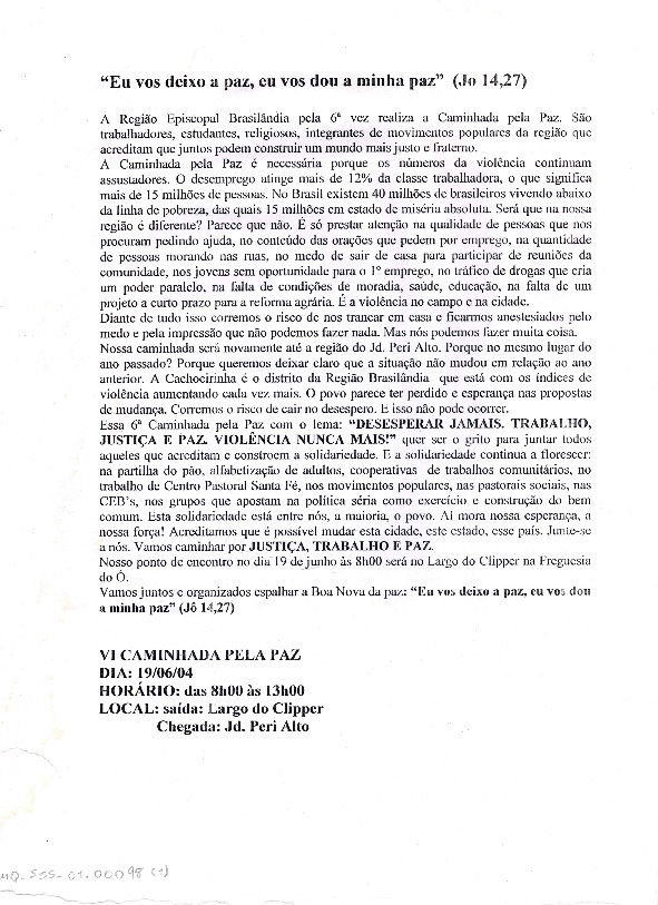 “Eu vos deixo a paz, eu vos dou a minha paz” (Jo 14,27)