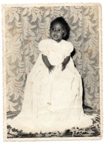 Maria de Lourdes de Souza (27/05/1963), terceira filha de Seu Tião e dona Apparecida, provavelmente no dia do seu batizado (vide vestimenta).