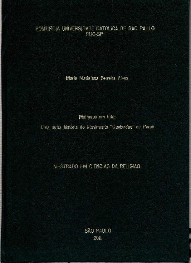 Dissertação de mestrado de Madalena Alves sobre as mulheres Queixadas com dedicatória à família de Sebastião Souza.