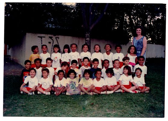 Thais Stella Souza e Silva - neta de Tião e Cida- é quinta criança, da esquerda para a direita, na fileira de trás. Foto feita na EMEI Olveira Lima, em Perus.