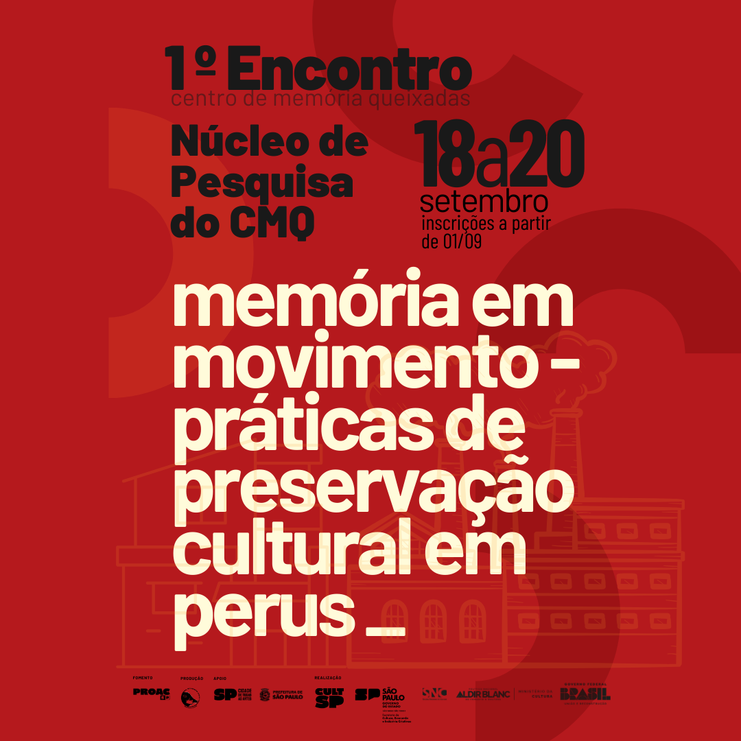 O Centro de Memória Queixadas – Sebastião Silva de Souza, em parceria com a Biblioteca Padre José de Anchieta, realiza entre os dias 18 e 20 de setembro de 2025 o “1º Encontro do Núcleo de Pesquisa do CMQ – Memória em Movimento: Práticas de Preservação em Perus“.